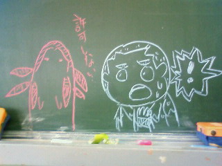 黒板に描いた、マジオ。